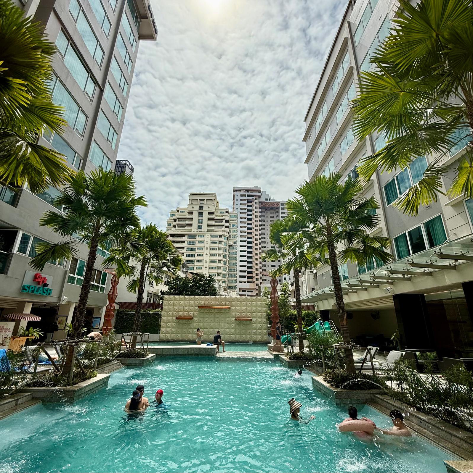La ciudad es tan grande que la primera decisión es la zona en la que os queréis alojar. Nosotros optamos por una zona muy cómoda y perfecta para las familias y una cadena que es apuesta segura siempre para las familias: Novotel. Elegimos el hotel Novotel Living Bangkok Sukhumvit Legacy , un hotel de lujo pero super pensado para las familias.