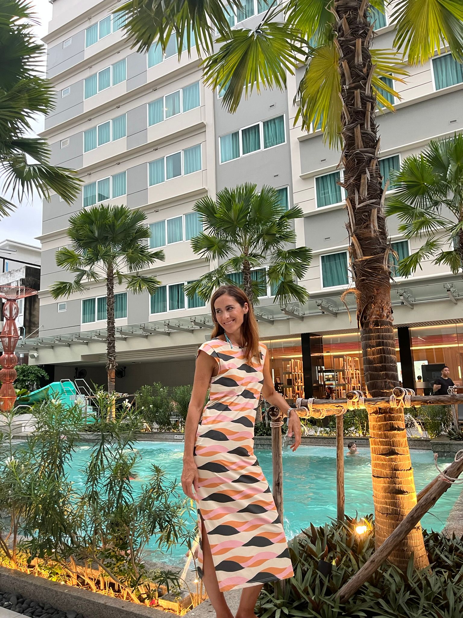 PISCINA CON CASCADA Y TOBOGÁN. La piscina es sin duda la estrella del hotel. Después de recorrer la ciudad, es maravilloso descansar del calor refrescándose en la piscina que además tiene una cascada y un divertido tobogán. Para los niños este rato diario fue clave. La piscina tiene además un bar y una heladería.