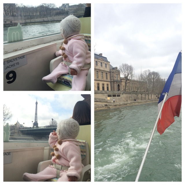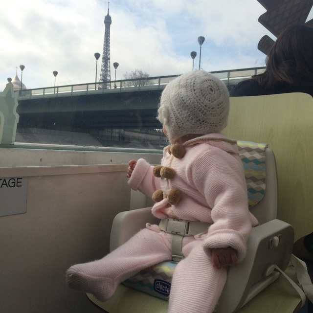 La que estuvo encantada en el barco y no se perdió nada mirando por la ventana fue la pequeña de la familia. En este viaje nos llevamos su trona portátil Chicco. Me avisaron que en la mayoría de los restaurantes franceses no tienen tronas para bebés (y es cierto) así que decidimos viajar con la trona para poder sentarla en restaurantes y sitios varios. Fue un acierto y aquí por ejemplo en el barco fue pegada a la ventana feliz todo el trayecto. Nos cabía debajo de la sillita y para este tipo de cosas nos vino genial: Bárbara podía estar fuera de la silla y estaba más contenta.